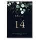 Eukalyptus Gold Floral Calligraphy Blue Wedding Tischnummer