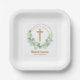 Ein goldenes Imitat-Glitzer-Kreuz und Eukalyptus-Blätter markieren diese Teller mit Ihrem Text in schicker Schrift. Ideal für die Taufe, Taufe oder erste Gemeinschaft Ihres Kindes. PASSENDE Artikel in unserem Shop erhältlich.