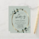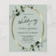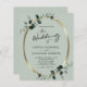Budget Eucalyptus Gold QR UAWG Sage Hochzeitseinladung.. Unsere preisgünstige QR Code UAWG botanische Vorder- und Rückseite Hochzeitseinladung verfügt über ein Imitat goldfarbener ovaler Rahmen, der mit smaragdfarbenen Eukalyptus-Blätter auf einem lichtdurchfluteten Hintergrund geschmückt ist. Die schicke moderne Kalligrafie zeigt den Text für "die Hochzeit von", "und" sowie "Empfang zu folgen", begleitet von eleganter Serifentypografie für den Text, den Sie personalisieren können. Auf der Rückseite der Einladung wird der QR-Code Ihrer Hochzeitswebsite sowie die URL der Website selbst angezeigt, die es Ihren Einladungen ermöglicht, einfach online zu UAWG und alle Details, die normalerweise in einem Hochzeitspaket verschickt werden, einzusehen. Diese moderne Hochzeitseinladung wurde so konzipiert, dass sie sowohl elegant als auch preisbewusst ist... ganz zu schweigen von der Zeit rettend. Das Beispiel QR-Codegrafik und alle Beispieltexte (außer den grafischen Kalligrafieelementen) können mit eigenen Informationen über die Personalisierungsvorlage leicht überarbeitet werden.