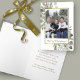 Diese Urlaubskarte ist festlich, einzigartig und schön. Es zeichnet sich durch ein prächtiges Design mit Ihrem Foto in einem goldenen Imitat-Folie Rahmen umgeben von handbemalten Aquarellkiefer-Äste und Eukalyptus-Blätter in den Tönen von Salbei und Gold aus. Die bearbeitbare Unterschrift lautet "Frohe Weihnachten", und innen ist Platz für einen Gruß und eine Unterschrift. Perfekte Art, in dieser Ferienzeit Grüße zu schicken.