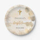 Für eine Taufe, geschlechtsneutral. Ein goldfarbener goldfarbener Hintergrund mit Pinselstrichen und mit Imitaten Glitzer Staub, ein Imitat goldenes Kreuz. Mit goldenen Eukalyptus-Blätter dekoriert, Blattwerk. Personalisieren und fügen Sie einen Namen und ein Datum hinzu.