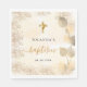 Für eine Taufe, geschlechtsneutral. Ein goldfarbener goldfarbener Hintergrund mit Pinselstrichen und mit Imitaten Glitzer Staub, ein Imitat goldenes Kreuz. Mit goldenen Eukalyptus-Blätter dekoriert, Blattwerk. Personalisieren und fügen Sie einen Namen und ein Datum hinzu.
