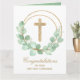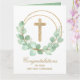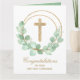 Ein goldenes Imitat-Glitzer-Kreuz und Eukalyptusblatt-Kranz markieren diese religiöse Grußkarte. Ideal für eine erste Kommunion, Taufe oder Taufe. Personalisieren Sie den Gruß innerhalb oder verlasse, wie es ist. PASSENDE Artikel in unserem Shop erhältlich.
