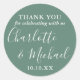 Eukalyptus grüne Signatur Gastgeschenk Hochzeit dankt Ihnen für den klassischen Rundaufkleber mit Signaturstilnamen. Personalisieren Sie mit Ihrem besonderen Dank Informationen in der schicken Typografie. Entwickelt von Thisisnotme©