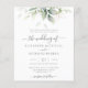 Schöne Hochzeitseinladung mit Aquarell Eukalyptus und goldenen Blätter.
