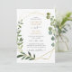 Dieses elegante und individuell gestaltbare Wedding Invitation besticht durch einen geometrischen goldenen Rahmen, der mit einem schönen, von Aquarellgrün geprägten Blattwerk verziert ist. Es wurde mit einer kalligraphischen Kalligraphie und einem klassischen Schriftart in Gold und Grau gepaart. Um erweiterte Änderungen vorzunehmen, wählen Sie bitte unter Personalisieren dieser Vorlage die Option "Klicken Sie auf, um weitere Anpassungen vorzunehmen".