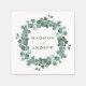 Elegante, botanische Hochzeitsnapkins mit einem Kranz aus handgemalten, staubgrünen Eukalyptus und Blättern. Personalisieren Sie die Eukalyptus Hochzeitsnapkins, indem Sie Ihre Namen. Entworfen, um mit unserer modernen Eukalyptus Greenery Hochzeitskollektion zu koordinieren.