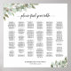 Dieses alphabetische Hochzeitssitzdiagramm hat Platz für bis zu 250 Namen. Es zeichnet sich durch eine rustikale Aquarellgestaltung aus, die mit Eukalyptus-Blätter, Grünpflanzen und Gartenblättern in Minz-, Moos- und Salbeigrün besticht. Der elegante Schriftzeichen-Titel lautet: Bitte finden Sie Ihren Tisch, und die Namen des Paares und des Hochzeitstils erscheinen unten. Auf diese Weise können Sie Ihren Empfängen bei der Sitzsuche helfen und gleichzeitig Eleganz und Stil hinzufügen.