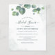 Diese individuellen Eukalyptus Brautduschen-Einladungen sind perfekt, um Ihren Gast zu personalisieren und um die Braut zu feiern! Das elegante Design besticht durch eine sanfte grüne Farbe mit grünen Buchstaben und Eukalyptus-Sprigs. Die Einladungen sind individuell einstellbar, sodass Sie sie mit allen Details der Dusche personalisieren können. Sie sind auch auf hochwertigem Papier gedruckt und als Zusatzkauf erhältlich.