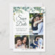 Mit diesem wunderschönen Aquarell dusty blue und green eucalyptus und grünem Grün verkünden Sie Ihren Hochzeitstag mit einem schlanken grünen Text mit 4 Verlobungen Fotos (3 vorne und 1 hinten). HILFE: Für Hilfe bei der Modifizierung oder Personalisierung des Designs, bei Farbänderungen, bei der Größenänderung, bei der Übertragung des Designs auf ein anderes Produkt oder wenn Sie die Dinge koordinieren möchten, wenden Sie sich bitte an den Designer, BEVOR er die Bestellung über die Registerkarte Zazzle Chat MESSAGE oder per E-Mail makeitaboutyoustore@gmail.com.