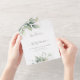 Schöne alles in einer Hochzeitseinladung mit Aquarell Eukalyptus und Gold Blätter. Ideal für Hochzeiten im Frühling und im Sommer.