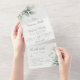 Schöne alles in einer Hochzeitseinladung mit Aquarell Eukalyptus und Gold Blätter.