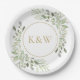 Diese schicke botanische Papierplatte mit zarter Aquarellpflanze kann mit Ihrer Monogramm personalisiert werden. Ideal für Hochzeiten, Brautpartys, Babyduschen, Taufe, Verlobungsfeiern, Jubiläumsfeiern und Geburtstagsfeiern. Entwickelt von Thisisnotme©