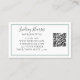 Diese elegante Visitenkarte ist mit Aquarellfarben-Eukalyptus-Blätter in sanften Grüntönen dekoriert. Einfach mit Ihrem Namen, Kontaktdaten, Ihrem Jobtitel und QR-Code anpassbar. Ändern Sie mithilfe des Entwurfstools die Textgröße, den Stil oder die Farbe. Weil wir unsere Kunstwerke erstellen, werden Sie dieses exakte Bild von anderen Designern nicht finden. Original Wasserfarbe © Michele Davies.