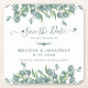 Laden Sie Freunde und Familie zu Ihrer Hochzeit mit diesen modernen eukalyptus grünen Hochzeit speichern Sie das Datum Untersetzer. Personalisieren Sie Ihre Daten mit Namen und Datum. Diese einzigartigen botanischen Untersetzer für Hochzeiten im Grünen sind mit eleganten Eukalyptus-Salbei-Sukkulenten und eleganten Schriften ausgestattet. COPYRIGHT © 2020 Judy Burrows, Black Dog Art - Alle Rechte vorbehalten. Eukalyptus Greenerenery Sage Wedding Save the Date Square Paper Untersetzer