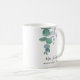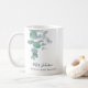 Diese elegante Teacher's Coffee Tasse ist mit Aquarell Eukalyptus-Blätter in sanften Grüntönen dekoriert.