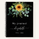 Ein schwarzer Hintergrund. Mit Sonnenblumen geschmückt und mit Eukalyptus-Pflanzen geschmückt. Fügen Sie einen Namen, Text hinzu. Der Name wird mit einem modernen handgeschriebenen Stilskript mit Swashes geschrieben. Um die Swashes behalten, löschen Sie nur den Beispielnamen, verlass die Leerzeichen oder Emoji's vor und nach dem Namen.