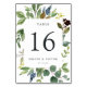 Gartenschick-Tischnummer-Karten sind mit grünen Aquarellblättern und Eukalyptus-Blätter versehen, die Ihre Tischnummer in schwarz-reich gestalten. Personalisieren Sie mit Ihren Namen und Hochzeitstermin, oder benennen Sie jeden Tisch für eine zusätzliche persönliche Touch. Design wiederholt sich auf der Rückseite. Koordiniert mit unserer Hochzeitssuite Eukalyptus Grove.