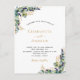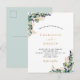Weiß, mit Eukalyptusgrün und goldenen Blätter dekoriert. Personalisieren und fügen Sie Ihre Namen und Hochzeitsdetails. Schwarze und goldfarbene Buchstaben. Tipp: Wenn Sie es nicht so gewollt haben, dass es wie eine Postkarte aussieht, klicken Sie auf Anpassen, gehen Sie auf die Rückseite und entfernen Sie den Trenner und posten Sie die Briefmarke.