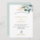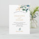 Weiß, mit Eukalyptusgrün und goldenen Blätter dekoriert. Personalisieren und fügen Sie Ihre Namen und Hochzeitsdetails. Schwarze und goldfarbene Buchstaben.