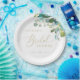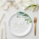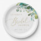 Maßgeschneiderte Brautparty-Papier-Teller mit eleganter Folientypografie mit Aquarelleukalyptus und Gründesign.