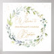 Baby Taufe/Christening Poster. Dieses Design zeigt eine Abbildung von grünen Blattwerk und eukalyptus-Blätter im Aquarellstil. Über den Blätter - Konfetti schmückt die Oberseite des Posters (ihre Bilder können entfernt werden). Auf dem Kranz befindet sich das Bild eines Kreuzes.