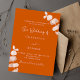 Orangefarbener Hintergrund, mit Eukalyptusstemmen dekoriert, mit Sprigs. Personalisieren und hinzufügen Sie Ihre Namen und die Details. Zurück: verbrannter oranger Hintergrund.