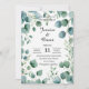 Eine frische und moderne Hochzeitsinspektion mit üppigen Eukalyptuszweigen in sanften Aquarellen. Die weiße Basis verleiht der natürlichen Eleganz einen besonderen Touch und schafft eine zeitlose und minimalistische Ästhetik. Das Zentrum ist leer verlassen, sodass Platz für personalisierten Text vorhanden ist. Ideal für botanische, rustikale und zeitgenössische Hochzeitsthemen.