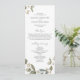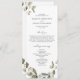 Teilen Sie Details Ihrer Hochzeit mit diesem rustikalen Hochzeitsprogramm. Es enthält Aquarellbilder von gesäumten Eukalyptuspflanzen mit einem whimsical-Skript. Ideal für Herbst oder Hochzeiten im Herbst.