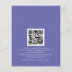 Eukalyptus Leaf Frame Lilac QR Code Einladung Hochzeit. Ein Preis SMALLER 4,5" x 5,6" Alternative. Erhältlich in einem SEMI GLOSS 110 lb CARD STOCK, der die Standardoption ist (ähnlich der Dicke einer Postkarte und empfohlen für Einladungen), ODER ein SATIN FINISH 80 lb THIN PAPER STOCK (besser geeignet für Gehäuse). Fügen Sie Ihren QR-Code zu Ihrer Hochzeitswebsite auf der Rückseite macht dies zu einer bequemen Option für Ihre Gäste, um alle Details zu sehen, ohne dass separate UAWG- und Detailkarten erforderlich sind. Ein geruhsamer Eukalyptus in Lila und Blues verkörpert den Text vor weißem Hintergrund. Hochzeit ist in einem handgeschriebenen Stil Set-Skript und die Erholung des Textes können Sie leicht personalisieren. Auf beiden Seiten ist lila blau.