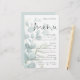 Budget Eukalyptus Elegantes Skript Hochzeitsmenü. Ein günstiges Preis-Leistungs-Verhältnis von 5,5" x 8,5", auf einem eleganten 110 lb LINEN Stock - für ein luxuriöses Ambiente zu einem guten Preis-Leistungs-Verhältnis, perfekt für Menüs, Einladungen und Programme etc. Diese Alternative zur Budgetgröße ist auch bei anderen Papiervorschlägen verfügbar. Der SEMI-GLOSS 110 lb Kartenvorrat ist etwa so dick wie eine Postkarte, funktioniert also auch bei Einladungen gut. Das FELT 100 lbs Papier ist bufffarben, NICHT weiß, fügt also eine rustikale Touch hinzu. Das Papier MATTE 80lbs ist hell weiß, für knackigen Druck, ideal für Ihre Menüs und Programme, während das SATIN 80lbs Papier dünn und leicht, ideal für Gehäuse. BITTE BEACHTEN SIE, DASS DIE OPTIONALEN ENVELOPES ETWAS GRÖSSER SIND, CA. 6,75" x 9". Dieses moderne Design hat Menu in elegantem Set-Script oben und die Erholung des Textes rechts ausgerichtet, unter dem Sie leicht personalisieren können, mit einem getönten Hintergrund von blauem Eukalyptus.