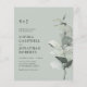 Budget Eucalyptus QR Code UAWG Sage Monogram Wedding Einladung. Unsere einfache, erschwingliche botanische Hochzeitseinladung bietet eine elegante Aquarellbahn in Eukalyptustönen in Weiß und staubigen Grün, die das Monogramm und den Einladungstext daneben absetzt. Auf dem Lichtschacht der Einladung wird auch der QR-Code Ihrer Hochzeitswebsite sowie die URL der Website selbst angezeigt, mit der Ihre Einladungen einfach online UAWG werden können und alle Informationen, die normalerweise in einem Hochzeitspaket verschickt werden, einsehen können. Der aktualisierte QR-Code auf dieser Einladung erlaubt es Ihnen, Ihren eigenen QR-Code für Hochzeitswebseiten zu generieren, indem Sie einfach Ihre Website-URL auf die Personalisierungsvorlage eingeben, wo dies angezeigt wird. Alle Beispieltexte können mit eigenen Informationen über die Personalisierungsvorlage leicht überarbeitet werden.