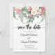 Eukalyptusgrün mit rosa und weißen Rosen auf dieser eleganten Save the Date-Karte. Personalisieren Sie mit Ihren Namen, das Datum Ihrer Hochzeit und die Stadt und Staat.