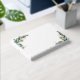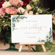 Ein klassischer weißer Hintergrund, Rose mit Goldfolie. Die Einrichtung ist mit Eukalyptuspflanzen und Lavendelblumenmöbeln gestaltet. Personalisieren und fügen Sie Ihre Namen und das Hochzeitstermin.