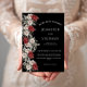 Eine elegante Hochzeitseinladung in Aquarelltönen mit einer links Ränder mit roten und weißen Rose und Eukalyptusgrün auf schwarzem Hintergrund. Bitte personalisieren Sie die Details Ihres besonderen Tages.