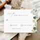 Wir laden Sie ein, mit unserem Eukalyptus Rustic Wedding RSVP mit Eleganz zu antworten. Diese Karte ist mit dem frischen Reiz der Eukalyptus-Blätter verziert und ist eine delikate Erweiterung Ihrer rustikalen Feier. Über seinen praktischen Zweck hinaus ist es ein duftender Token, der Liebende einlädt, ihre Anwesenheit in der Symphonie Ihres besonderen Tages zu bestätigen. Die botanische Einfachheit und der rustikale Charme verleihen Ihrem Hochzeitsgeist eine harmonische Verbindung zwischen der Natur und Ihrer Liebe. Mit jeder Reaktion wächst die Vorfreude, und Ihre rustikal inspirierte Gewerkschaft blüht in den Herzen derer, die an Ihrer Freude teilhaben werden. Wählen Sie diese UAWG, um nicht nur Bestätigungen zu sammeln, sondern um eine Atmosphäre zu kultivieren, in der jeder Gast zu einem integralen Bestandteil Ihrer naturbelassenen Reise durch den Gang wird.
