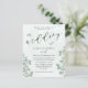 Elegantes schlängelgrünes Design für Ihre perfekte Einladung. Ein originelles Design mit sanftem Eukalyptus und koordinierender Vegetation, das einen atemberaubenden Rahmen für Ihre persönlichen Daten schafft. Alles, was Sie tun müssen, ist auf Personalisieren zu klicken und den Anweisungen zu folgen.