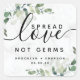 Dieses moderne Design besagt, dass die Verbreitung von Liebe keine Keime in trendiger Schrift-Typografie, umgeben von Eukalyptus-Blätter. Personalisieren Sie mit Ihren Namen und Hochzeitstermin.