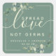 Dieses moderne Design besagt, dass die Verbreitung von Liebe keine Keime in trendiger Schrift-Typografie, umgeben von Eukalyptus-Blätter. Personalisieren Sie mit Ihren Namen und Hochzeitstermin.