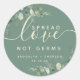Dieses moderne Design besagt, dass die Verbreitung von Liebe keine Keime in trendiger Schrift-Typografie, umgeben von Eukalyptus-Blätter. Personalisieren Sie mit Ihren Namen und Hochzeitstermin.