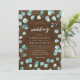 Diese rustikale Hochzeitseinladung enthält Eukalyptus-Blätter mit den Worten "Hochzeit" in trendiger Schrift, alles vor einem braunen Holzhintergrund auf der Vorderseite und einer dunkelgrünen, aquamarinen Rückseite. Personalisieren Sie es, indem Sie den Platzhalter-Text ersetzen. Für weitere Optionen, wie zum Beispiel den Schriftart zu ändern, ist es die Größe, Abstand zwischen den Buchstaben und zu erweitern oder zu kontrahieren gekrümmten Text klicken Sie auf die Schaltfläche "Anpassen". *Bitte beachten Sie, dass das Zazzle-Wasserzeichen, das in der Zoomvorschau angezeigt wird, NICHT auf dem gedruckten Endprodukt erscheint. © Rosewood and Citrus