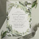 Feiern Sie Ihre Hochzeit mit der zeitlosen Schönheit dieser Eukalyptus-Blätter, die moderne Hochzeitsvellum-Einladungen. Dieses Design mit einem üppigen Kranz aus Eukalyptusgrün und eleganter Typografie eignet sich perfekt für naturlich inspirierte, moderne oder minimalistische Hochzeitsthemen. Das durchsichtige Vellum-Overlay fügt eine Touch von Eleganz hinzu und macht diese Einladungen stilvoll und unvergesslich.