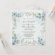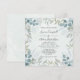 Eleganter Eukalyptus und die grüne Umgebung sind in diesem romantischen Design untergebracht. Mit einer dustigen blauen, grünen und weichen blau/grau Farbpalette ist dieses Thema perfekt für Ihre Hochzeit.Der Hintergrund hat eine Aquarellstruktur in Salbei. Einfach mit Ihren individuellen Details anpassen.
