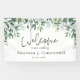 Schönes rustikales Hochzeitsbanner mit individuellen Namen und Hochzeitsdatum. Elegantes, wasserfarbenes Blattwerk aus eukalyptusblättern und botanischen Ästen und Blätter in den Schattierungen Salbei, grün und staubblau. Fügen Sie einfach die Namen Ihrer Braut und Bräutigam und ihren Hochzeitstag hinzu. Sehen Sie sich unsere Kollektion an, um mehr prachtvolle Produkte mit diesem Design zu erhalten. Rustikales Eukalyptus-Hochzeitsbanner.