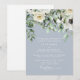 Moderne weiße Blüten und Eukalyptus Foliage dufte blaue Hochzeitseinladung. Beide Eltern haben aufgelistet.