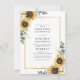 Sonnenblume Eukalyptus geometrische Hochzeitseinladung. Mit dieser niedlichen Vorlage mit einem wunderschönen rustikalen Blumenstrauß, einem geometrischen Rahmen mit Goldeffekten und moderner Typografie erstellen Sie eine moderne Hochzeitskarte für Sonnenblumen. TIPP: Passende Hochzeitssuite-Karten wie UAWG, Hochzeitsfeiern, Banner, Tapisserien, Geschenketiketten, Schilder und andere Hochzeitsgeschenke und Goodies sind in der folgenden Kollektion mit diesem Design erhältlich.