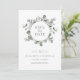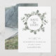 Eukalyptus Wedding Foto Aquarell Save the Date. Diese stilvolle und einfache Hochzeit speichern Sie die Dattelkarte mit einem Kranz von wunderschönen Salbei grünen Aquarell boho-chic eucalyptus Blätter. Auf der Rückseite befindet sich ein Foto zum Personalisieren. Die passenden Produkte sind in der Simple & Chic Eukalyptus Collection enthalten.