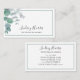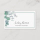 Diese Visitenkarte des Hochzeitsplaners ist mit Eukalyptus-Blättern in sanften Grüntönen dekoriert. Einfach mit Ihrem Namen und Ihren Kontaktdaten anpassbar. Ändern Sie mithilfe des Entwurfstools die Textgröße, den Stil oder die Farbe. Wenn wir unsere Kunstwerke erstellen, werden Sie dieses exakte Bild von anderen Designern nicht finden. Original Wasserfarbe © Michele Davies.