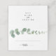 Diese grüne Eukalyptus-Hochzeitsfeier ist perfekt für eine einfache Hochzeit. Das Design bietet Aquarellfarben handgezeichnet elegante botanische Eukalyptuszweige und Blätter. Personalisieren Sie die Rückseite der Platzkarte mit den Namen der Braut und Bräutigam und dem Datum.