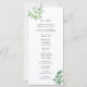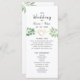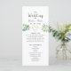 Modernes, rustikales, elegantes botanisches Hochzeitsprogramm mit Goldseilherz, einfachem Kalligraphieskript und Aquarelleukalyptus-Blätter.